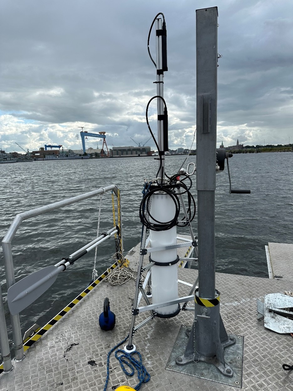 The magnetic properties of metallic objects depend on their material hysteresis, magnetization, and orientation relative to the Earth’s magnetic field. By precisely measuring local distortions of the geomagnetic field, it becomes possible to infer the presence of such objects. Another application involves monitoring of critical maritime chokepoints, such as harbor entrances or sluices. By combining an active coil (transmitter) with a magnetic sensor (receiver), low-profile and difficult-to-detect surveillance can be achieved through the analysis of magnetic field interactions. Furthermore, we investigate magnetic signatures in the wake of vessels. Simulations suggest that these signatures can persist in the water over extended periods, potentially enabling passive ship tracking. Since these signals typically lie in the pT to fT range, their measurement poses significant technical challenges. While state-of-the-art magnetometers provide the required sensitivity, ambient magnetic noise and environmental disturbances make robust signal extraction particularly demanding.Technical Approaches